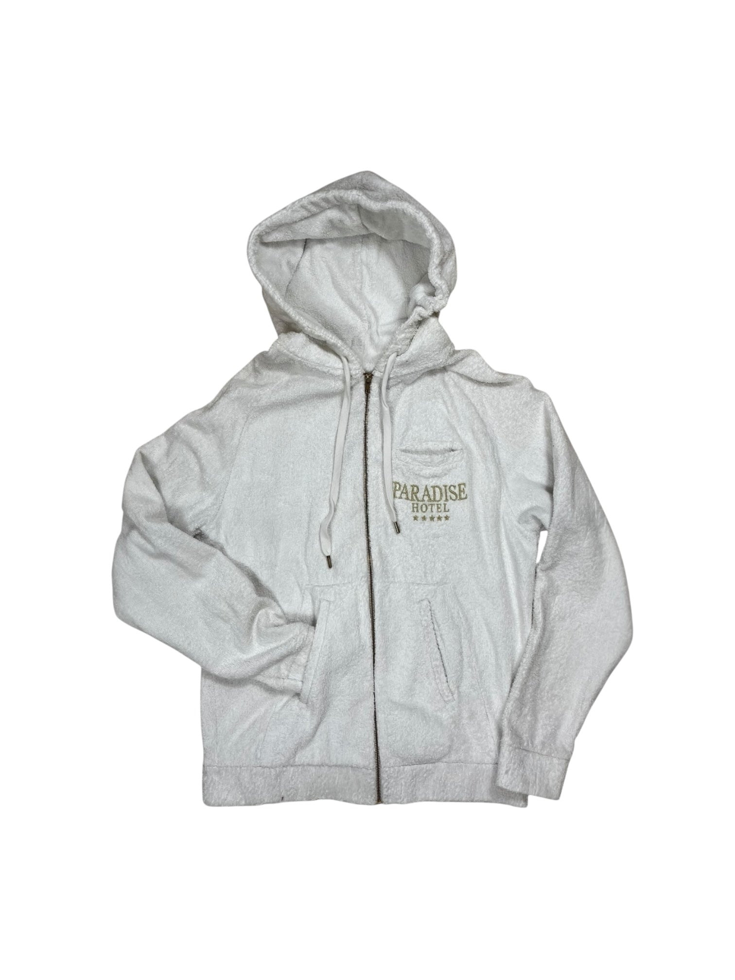 Ashish x Topshop “Paradise Hotel” Terry Zip Hoodie – White/Gold (Size M)