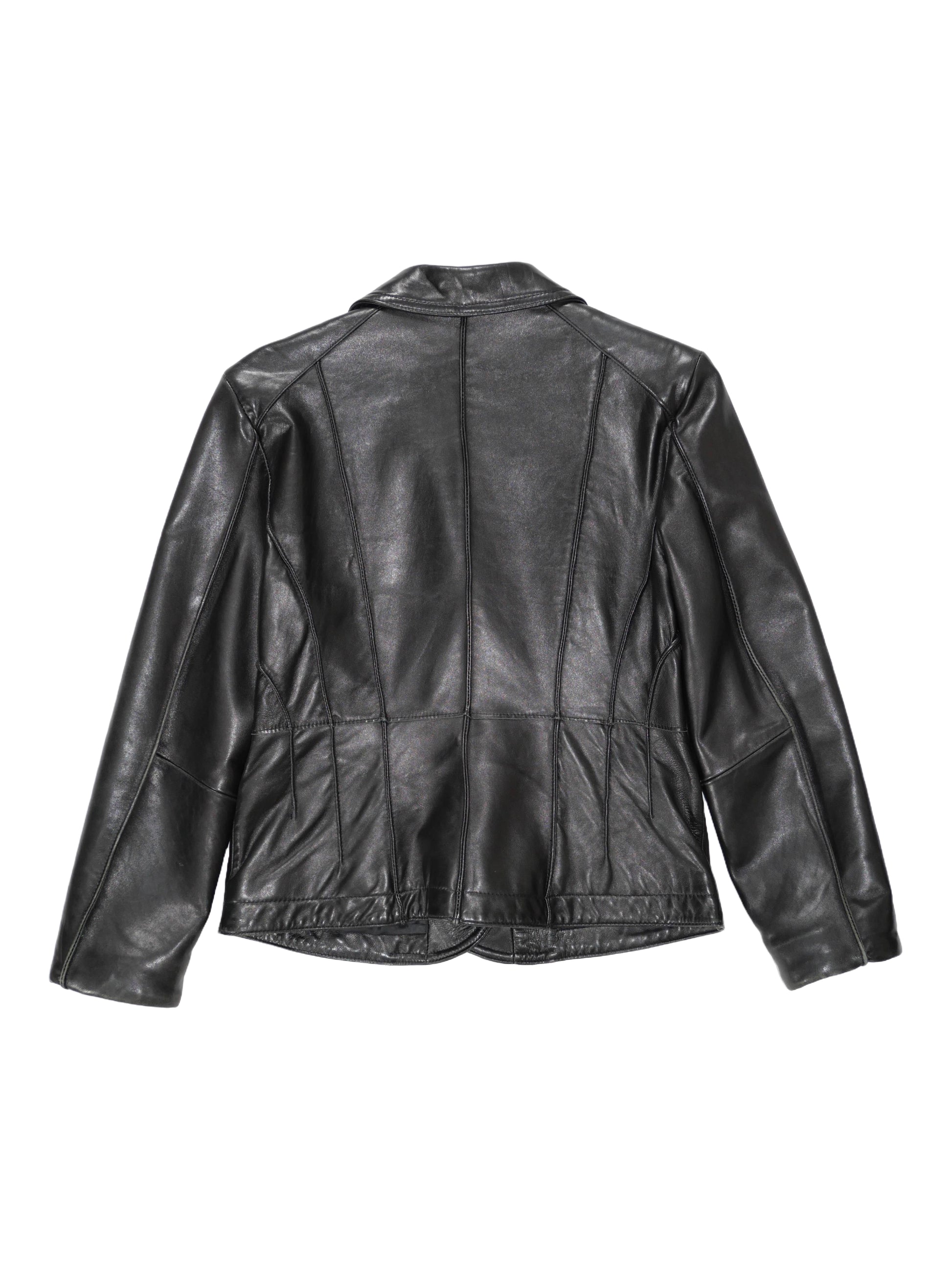 Style: Vintage black leather blazer jacket / tailored glossy leather jacket