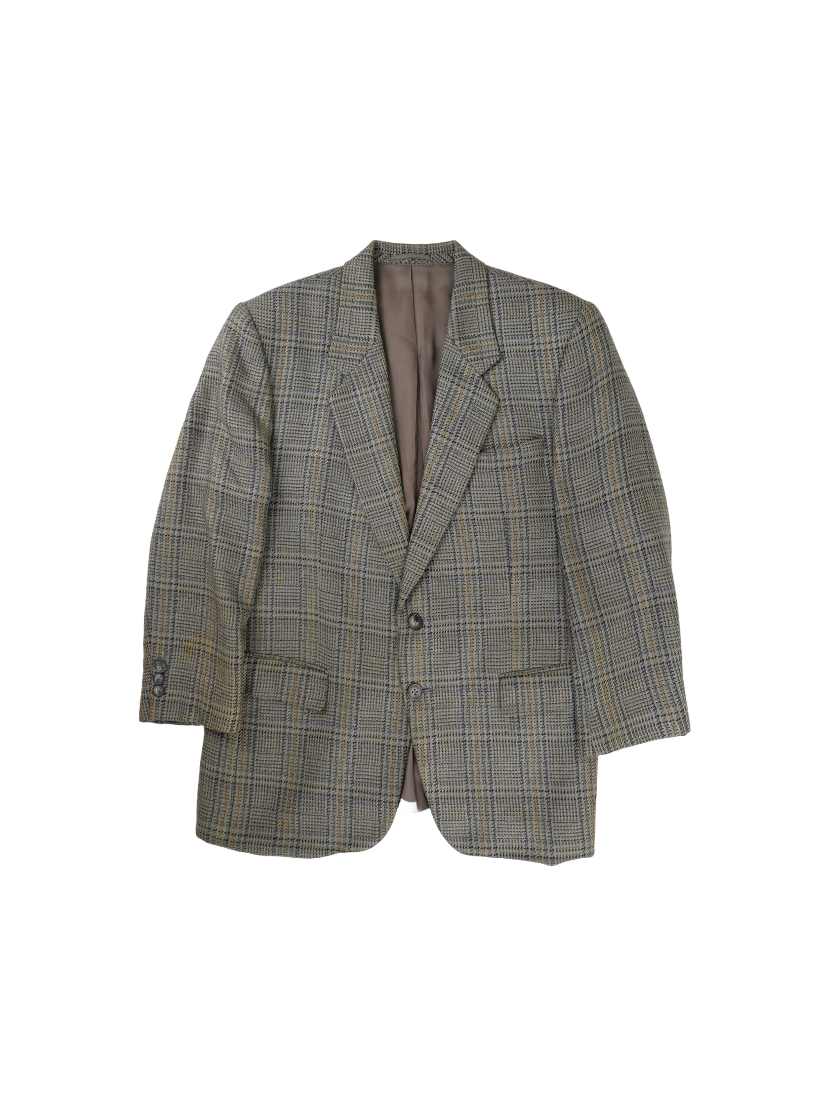 Vintage Wool Mink Cashmere Blazer - Windowpane Check Tailored Jacket
