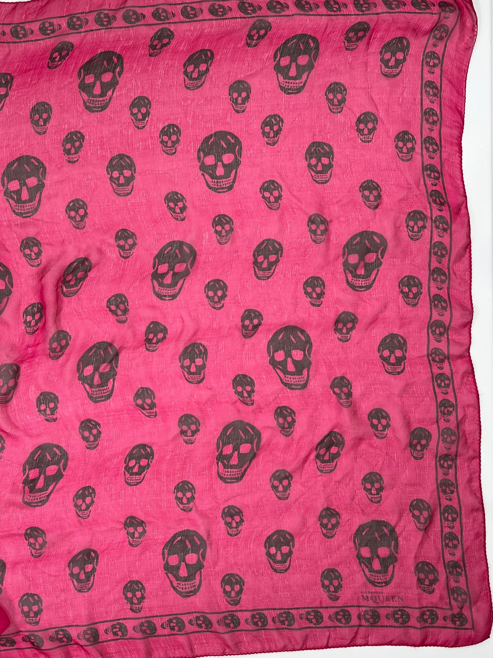 Alexander McQueen Skull Scarf – Hot Pink Silk Chiffon Iconic Print (Y2K Classic)