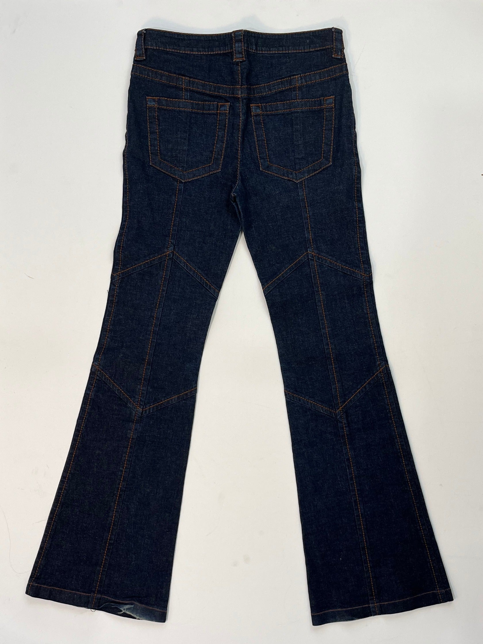 Prada Dark Wash Flared Jeans – Contrast Stitch Denim, Size XS / IT 38 / US 6